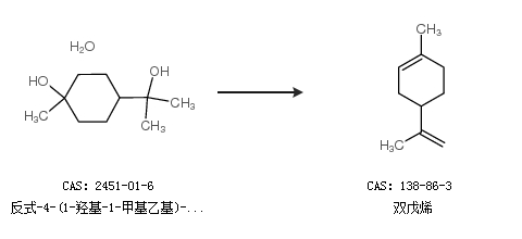 2.通过反式-4-(1-羟基-1-甲基乙基)-1-甲基环己-1-醇合成双戊烯