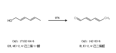 1.通过(2E,4E)-2,4-己二烯-1-醇合成(E,E)-2,4-己二烯醛,收率约97%;