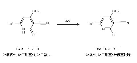 1.通过2-氧代-4,6-二甲基-1,2-二氢吡啶-3-甲腈合成2-氯-4,6-二甲基-3-氰基吡啶,收率约97%;