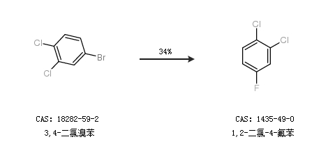 1.通过3,4-二氯溴苯合成1,2-二氯-4-氟苯,收率约34%;