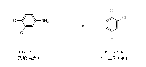 2.通过易瑞沙杂质III合成1,2-二氯-4-氟苯