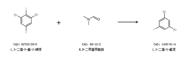 2.通过1,3-二溴-5-氟-2-碘苯和N,N-二甲基甲酰胺合成1,3-二溴-5-氟苯