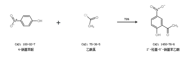 1.通过4-硝基苯酚和乙酰氯合成2''-羟基-5''-硝基苯乙酮,收率约79%;