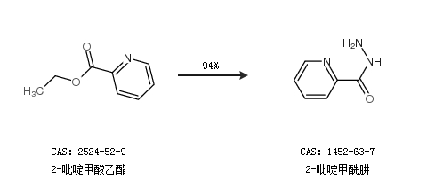 1.通过2-吡啶甲酸乙酯合成2-吡啶甲酰肼,收率约94%;