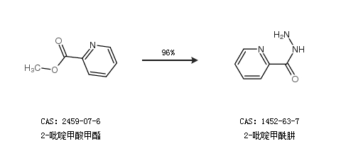 2.通过2-吡啶甲酸甲酯合成2-吡啶甲酰肼,收率约96%;