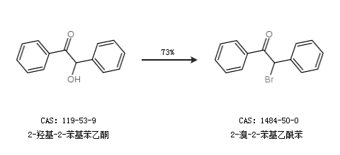 2.通过2-羟基-2-苯基苯乙酮合成2-溴-2-苯基乙酰苯,收率约73%;