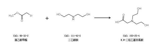 1.通过溴乙酸甲酯和二乙醇胺合成N,N-二羟乙基甘氨酸