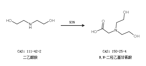 2.通过二乙醇胺合成N,N-二羟乙基甘氨酸,收率约93%;
