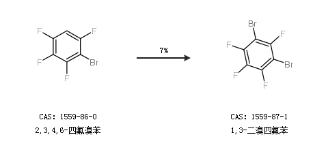1.通过2,3,4,6-四氟溴苯合成1,3-二溴四氟苯,收率约7%;