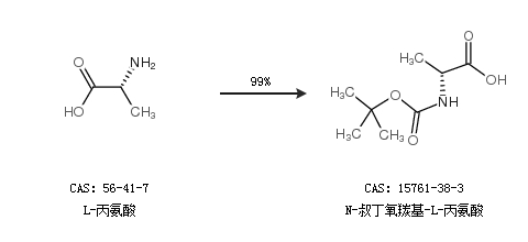 1.通过L-丙氨酸合成N-叔丁氧羰基-L-丙氨酸,收率约99%;