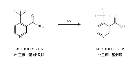 2.通过4-(三氟甲基)烟酰胺合成4-三氟甲基烟酸,收率约89%;
