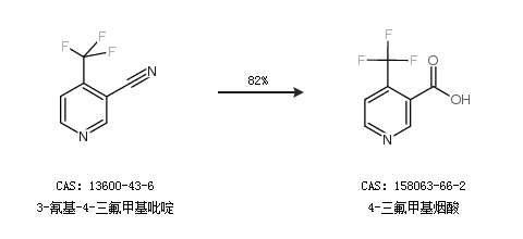 1.通过3-氰基-4-三氟甲基吡啶合成4-三氟甲基烟酸,收率约82%;