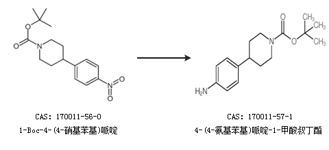 2.通过1-Boc-4-(4-硝基苯基)哌啶合成4-(4-氨基苯基)哌啶-1-甲酸叔丁酯