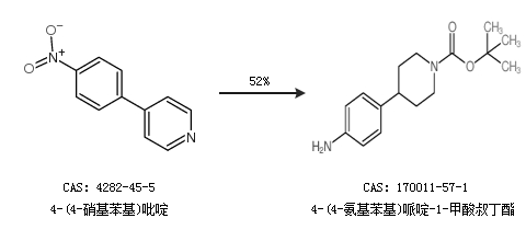 1.通过4-(4-硝基苯基)吡啶合成4-(4-氨基苯基)哌啶-1-甲酸叔丁酯,收率约52%;