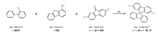 2.通过2-溴联苯、1-芴醇和2,7-二溴-9-芴酮合成2,7-二溴-9,9''-螺二芴,收率约79%;