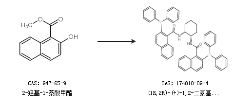 2.通过2-羟基-1-萘酸甲酯合成(1R,2R)-(+)-1,2-二氨基环己烷-N,N′-双(2-苯基膦-1-萘酰基)
