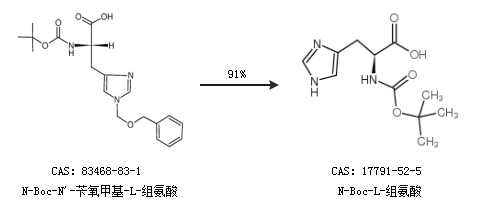 1.通过N-Boc-N''-苄氧甲基-L-组氨酸合成N-Boc-L-组氨酸,收率约91%;