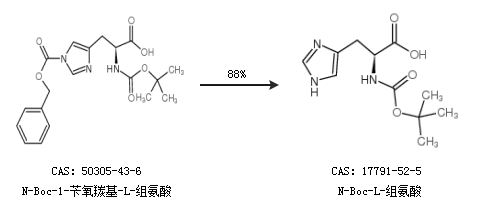 2.通过N-Boc-1-苄氧羰基-L-组氨酸合成N-Boc-L-组氨酸,收率约88%;