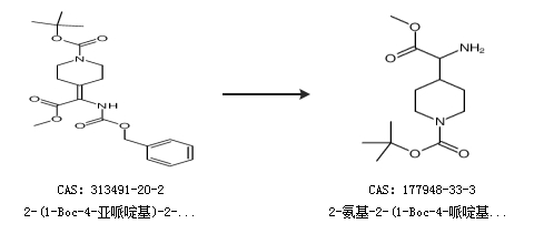 1.通过2-(1-Boc-4-亚哌啶基)-2-(Cbz-氨基)乙酸甲酯合成2-氨基-2-(1-Boc-4-哌啶基)乙酸甲酯
