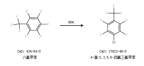 1.通过八氟甲苯合成4-溴-2,3,5,6-四氟三氟甲苯,收率约88%;