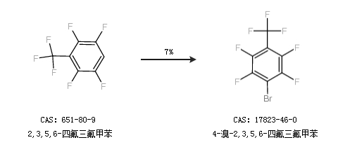 2.通过2,3,5,6-四氟三氟甲苯合成4-溴-2,3,5,6-四氟三氟甲苯,收率约7%;