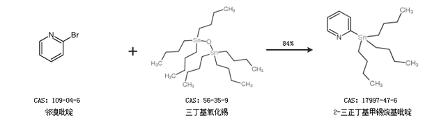 2.通过邻溴吡啶和三丁基氧化锡合成2-三正丁基甲锡烷基吡啶,收率约84%;