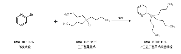 1.通过邻溴吡啶和三丁基氯化锡合成2-三正丁基甲锡烷基吡啶,收率约99%;