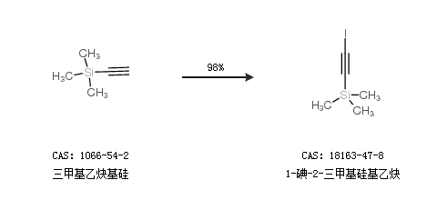1.通过三甲基乙炔基硅合成1-碘-2-三甲基硅基乙炔,收率约98%;