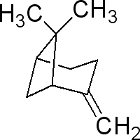 又称β-松节烯。双环单萜类化合物。与α-蒎烯互为双键位置异构体。存在一对对映体,均为油状。β-蒎烯是松节油的主要成分之一,可做香料成分,也是制备香味化合物的重要中间体