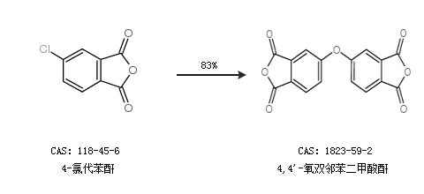 1.通过4-氯代苯酐合成4,4''-氧双邻苯二甲酸酐,收率约83%;