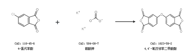 2.通过4-氯代苯酐和碳酸钾合成4,4''-氧双邻苯二甲酸酐