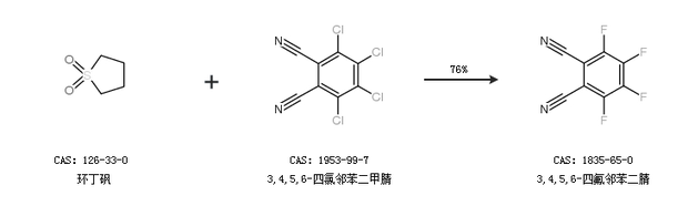 1.通过环丁砜和3,4,5,6-四氯邻苯二甲腈合成3,4,5,6-四氟邻苯二腈,收率约76%;