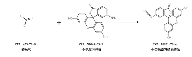 1.通过硫光气和6-氨基荧光素合成6-荧光素异硫氰酸酯