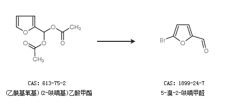 2.通过(乙酰基氧基)(2-呋喃基)乙酸甲酯合成5-溴-2-呋喃甲醛