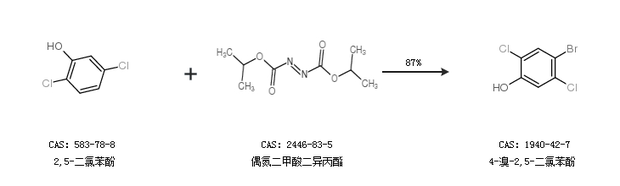 1.通过2,5-二氯苯酚和偶氮二甲酸二异丙酯合成4-溴-2,5-二氯苯酚,收率约87%;