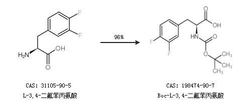 2.通过L-3,4-二氟苯丙氨酸合成Boc-L-3,4-二氟苯丙氨酸,收率约96%;