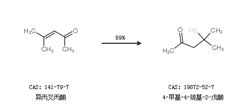 1.通过异丙叉丙酮合成4-甲基-4-巯基-2-戊酮,收率约69%;
