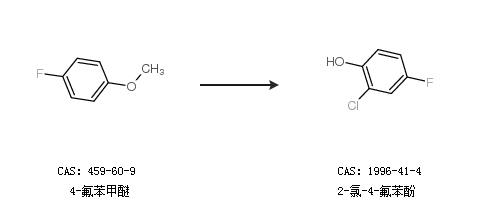 2.通过4-氟苯甲醚合成2-氯-4-氟苯酚