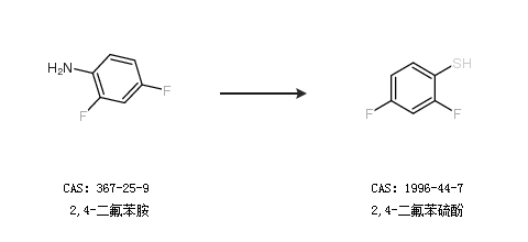 2.通过2,4-二氟苯胺合成2,4-二氟苯硫酚