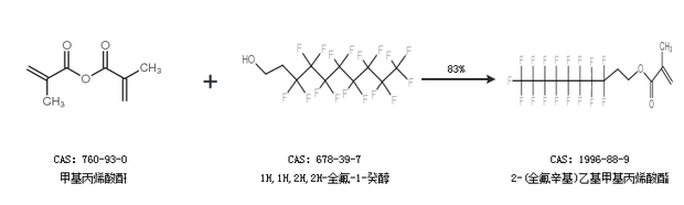 1.通过甲基丙烯酸酐和1H,1H,2H,2H-全氟-1-癸醇合成2-(全氟辛基)乙基甲基丙烯酸酯,收率约83%;