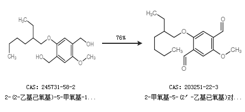 1.通过2-(2-乙基己氧基)-5-甲氧基-1,4-苯二甲醇合成2-甲氧基-5-(2′-乙基已氧基)对苯二甲醛,收率约76%;