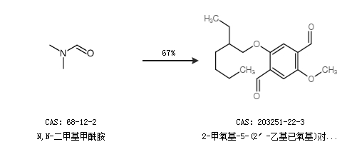 2.通过N,N-二甲基甲酰胺合成2-甲氧基-5-(2′-乙基已氧基)对苯二甲醛,收率约67%;