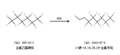 2.通过全氟己基碘烷合成1-碘-1H,1H,2H,2H-全氟辛烷,收率约95%;