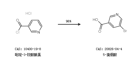 1.通过吡啶-3-羧酸酰氯合成5-溴烟酸,收率约96%;