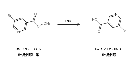 2.通过5-溴烟酸甲酯合成5-溴烟酸,收率约89%;