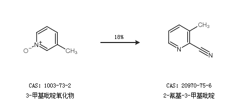 1.通过3-甲基吡啶氧化物合成2-氰基-3-甲基吡啶,收率约18%;