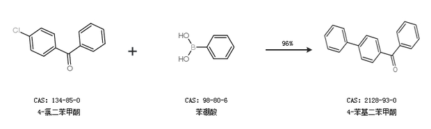 2.通过4-氯二苯甲酮和苯硼酸合成4-苯基二苯甲酮,收率约96%;