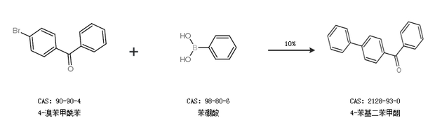 1.通过4-溴苯甲酰苯和苯硼酸合成4-苯基二苯甲酮,收率约10%;