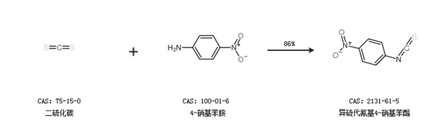 2.通过二硫化碳和4-硝基苯胺合成异硫代氰基4-硝基苯酯,收率约86%;