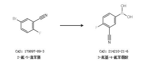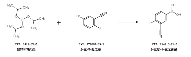 2.通过2-氟-5-溴苯腈合成3-氰基-4-氟苯硼酸